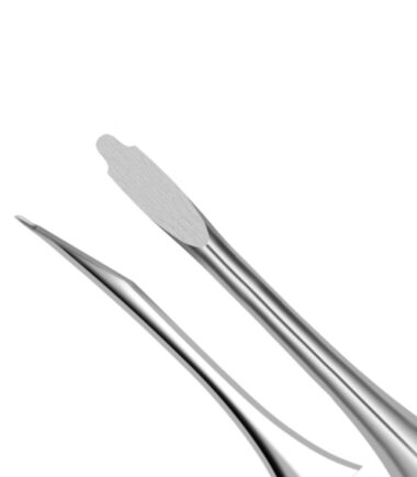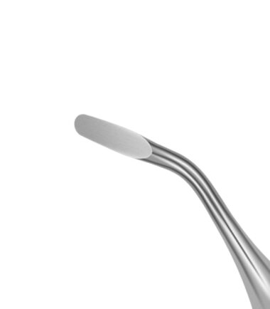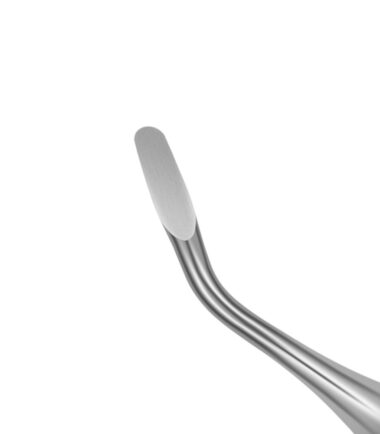The periosteal elevator is used to lift a muco-periosteal flap off the bone when performing surgical extractions. The fine round, dished double-ended 2/4 (4/6 mm) periosteal elevator is suitable for cats and dogs.