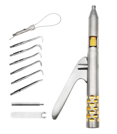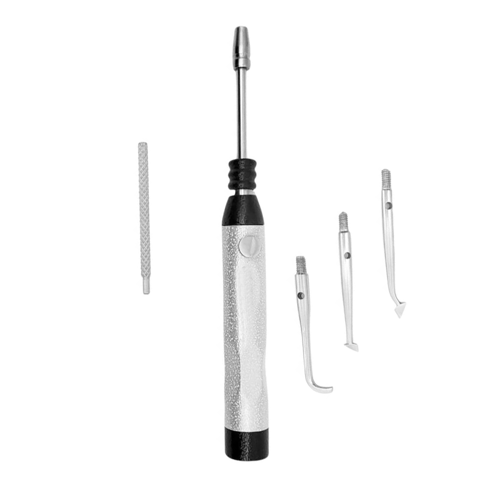 Professional stainless steel dental crown remover with 3 attachments, ergonomic design, and spring-loaded mechanism for efficient and comfortable crown removal.