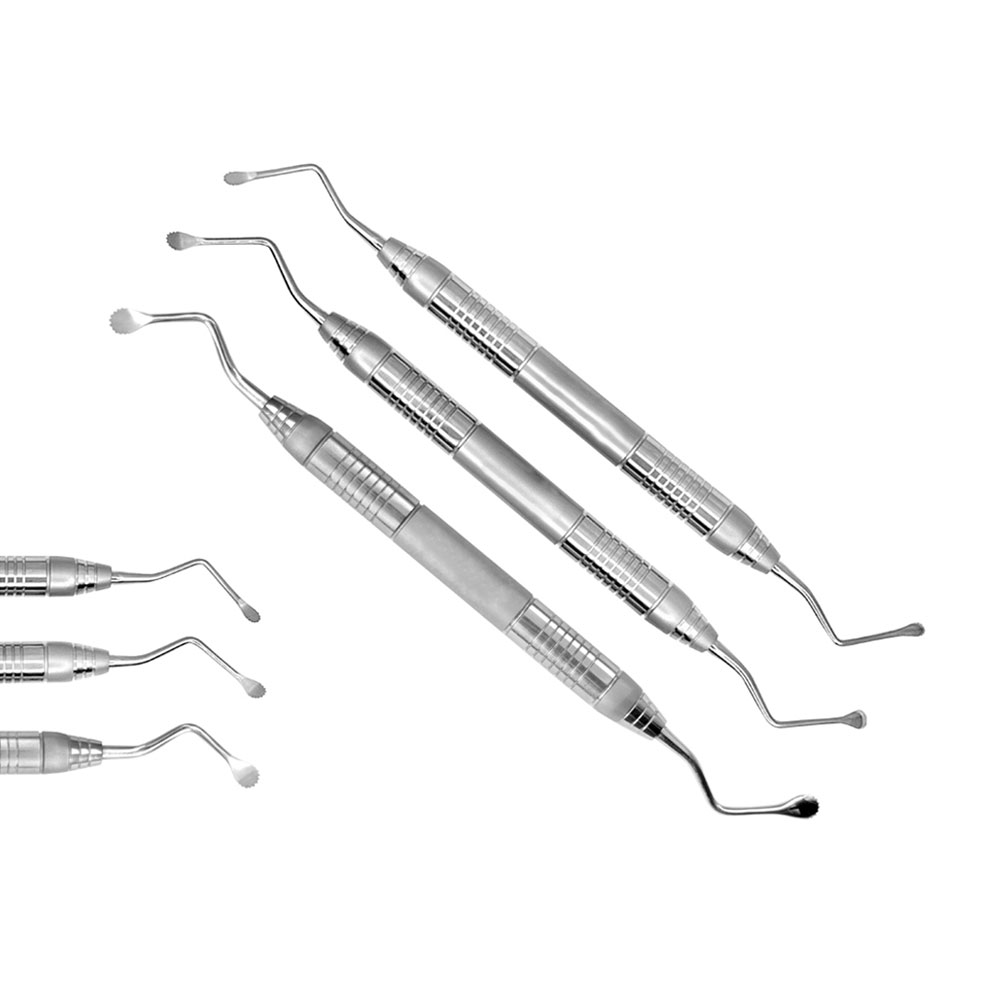 Lucas Bone Curettes Set of 3 Serrated – Precision Dental Surgical Instrument Set